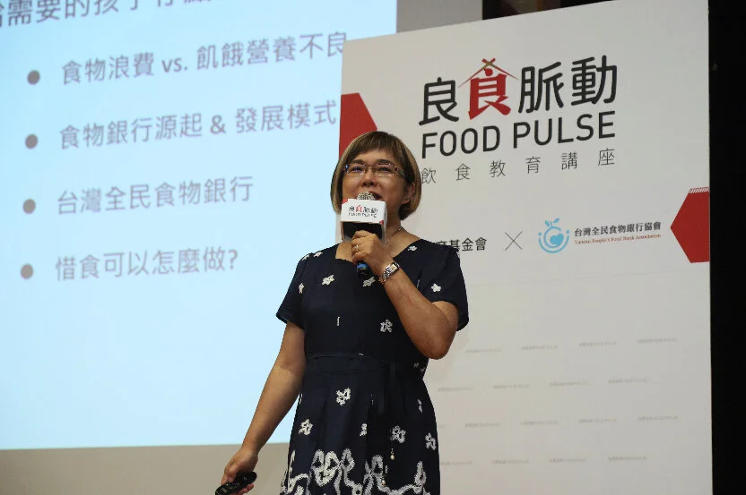 ▲台灣全民食物銀行協會秘書長劉露霞,分享:「良好的飲食分配以及充足的飲食教育,是從根本解決飲食浪費的最佳方式!」