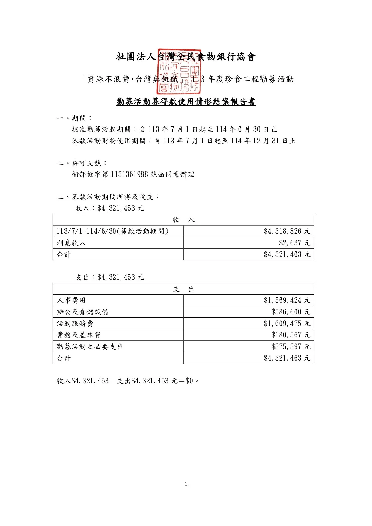 「資源不浪費・台灣無飢餓」-113年度珍食工程勸募活動(113年7月~114年6月)